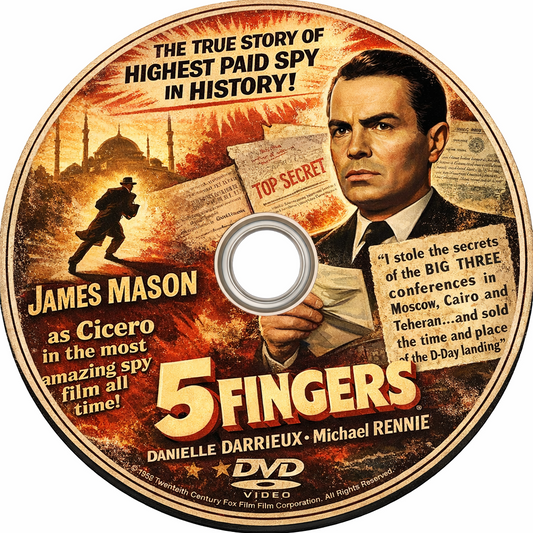 5 FINGERS (1952) James Mason ,Danielle Darrieux ,Michael Rennie ,Walter Hampden ,Oskar Karlweis ,Herbert Berghof ,John Wengraf - Public Domain DVD NO CASE
